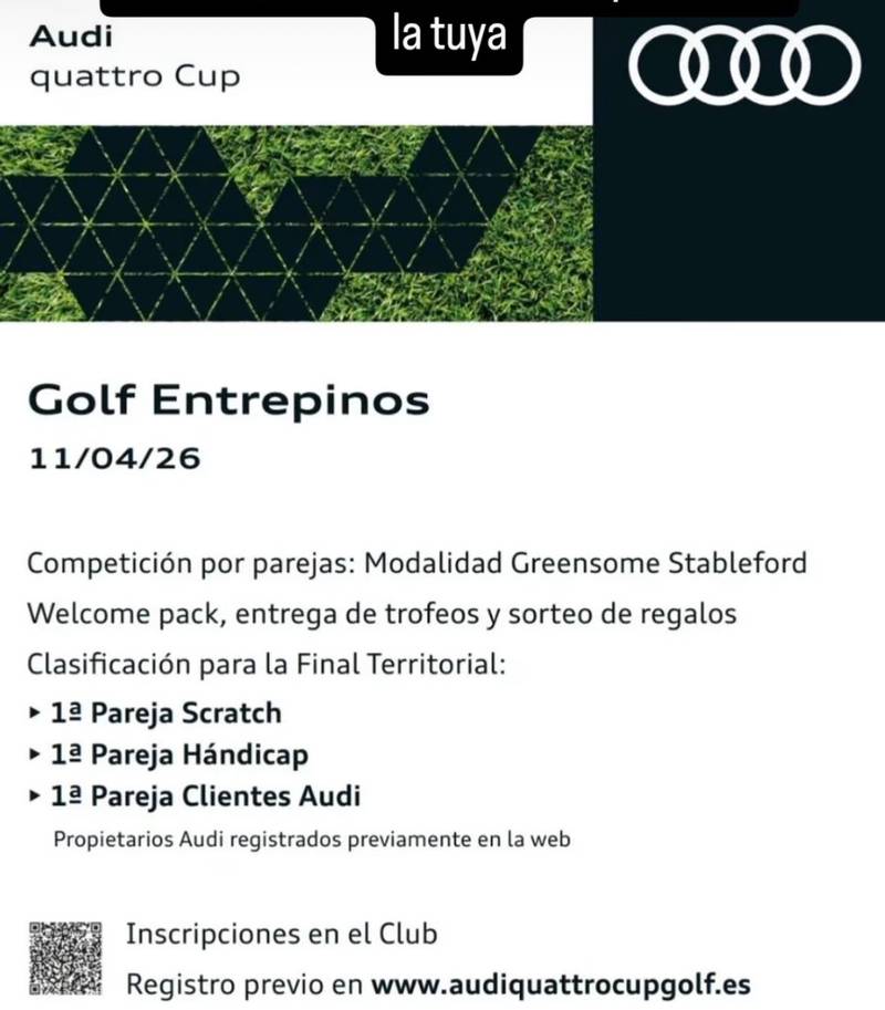 Inicio›Torneos›VALLADOLID›Audi Quattro CupAudi Quattro CupSábado, 11 de abril de 202611 días⛳Entrepinos Golf↗📍VALLADOLID📝 DescripciónScreenshot⛳ InscripciónWhatsApp Compartir torneo←